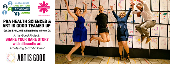 Helping people create something meaningful is what I do. Events like Global Genes Rare Patient Summit in California offered Art is Good as an experiential art activity in 2017 and 2018. Collaborative art making followed by an exhibition event sponsored by PRA Health Sciences.