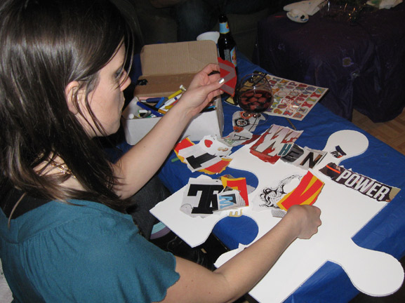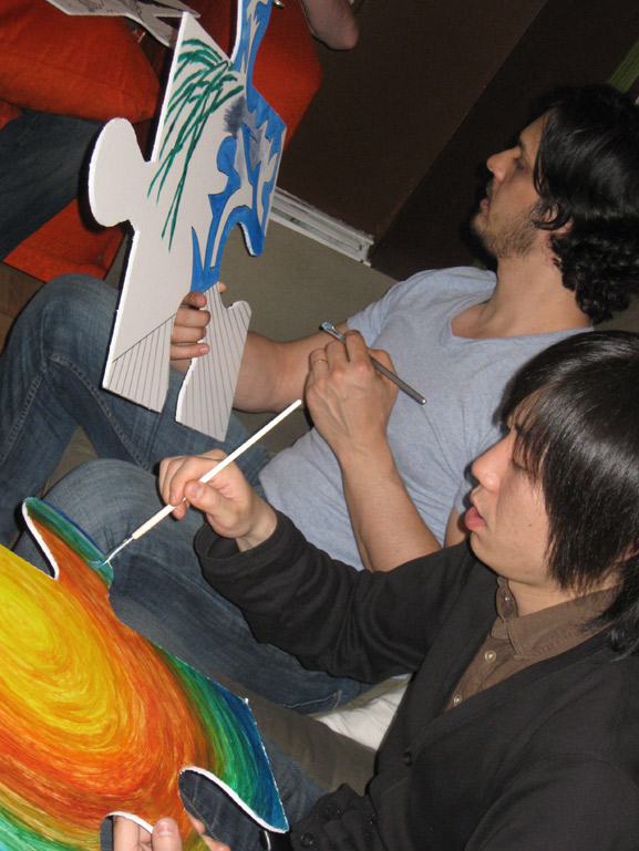 We are trying to grow the adult perspective of our puzzle project. Jessie and Tim (Puzzle Team) threw a puzzle art making party at their flat in Brooklyn. They invited a bunch of their creative friends. There were art supplies and collage materials (and food & drinks)... the artists simply needed to bring their good ideas..