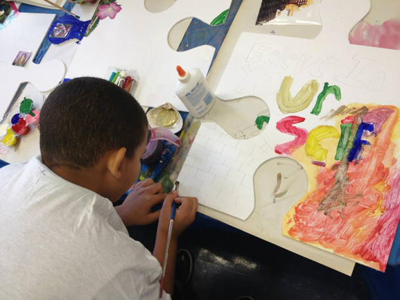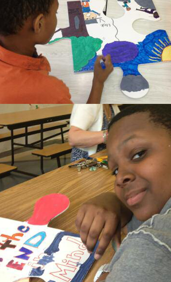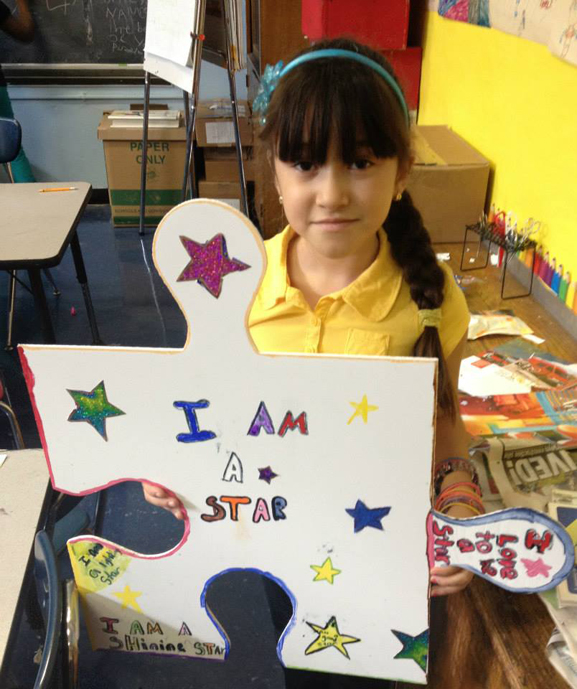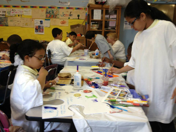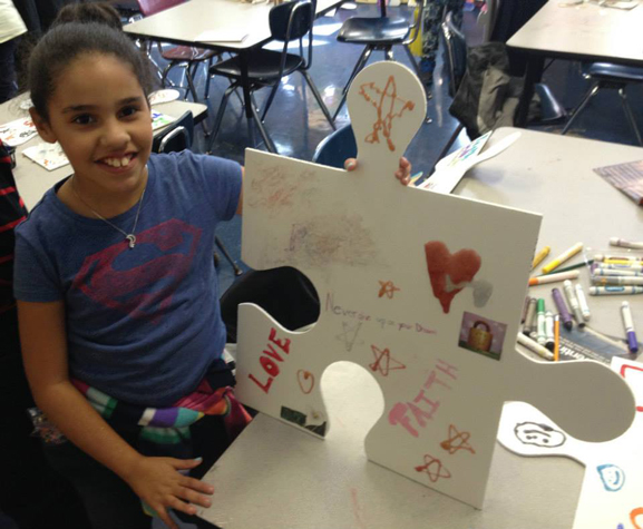 Thanks to a grant from the Walentas Family Foundation, PS16 Leonard Dunkley Elementary School is offering "Art is Good" to the entire school throughout the 2013-2014 school year. Every student, plus the Art is Good Club, created over 300 amazing puzzle pieces together.