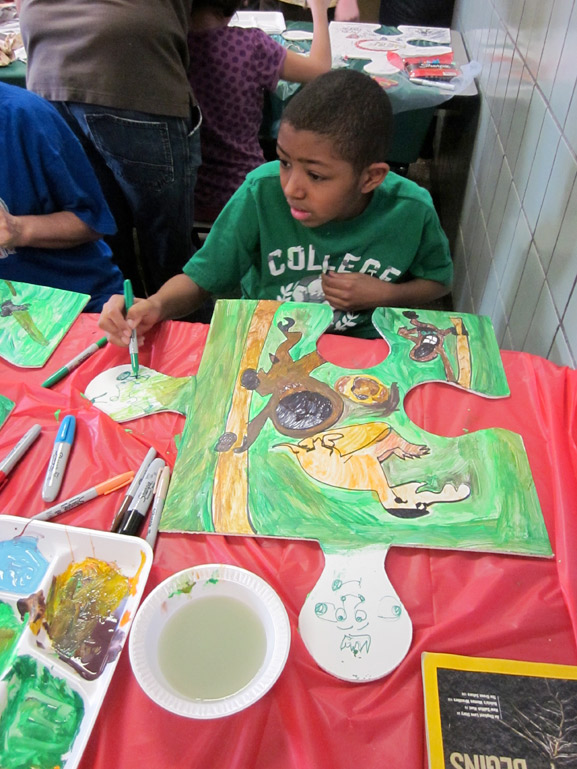 On March 18th, 2011, The Puzzle Team went to PS177 in Queens to make puzzle art with Gail, Kathy, Merrill and the fun students and staff at the school. The young artists from District 75 were some of the most motivated we have ever worked with. It was an amazing Friday of puzzle art making.