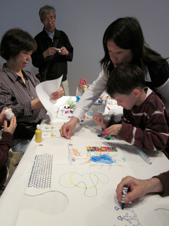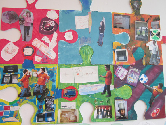 Melanie Adsit, resident artist at The Queens Museum of Art, has brought the puzzle project to the museum's educational program. Along with her artistic cohort Rachel, she worked with Lois and the young artists at PS144 to create some amazing puzzle pieces. On Thursday, April 28th, Jessie and I joined them at the museum for some puzzle art making with local families. Big thanks to Lauren, Tim and the kind staff at the Queens Museum of Art for inviting us to their family event. The museum is an amazing place and the best part is that they are under construction, so their best has yet to come. We highly recommend a visit.